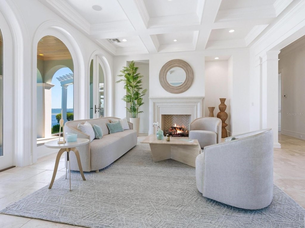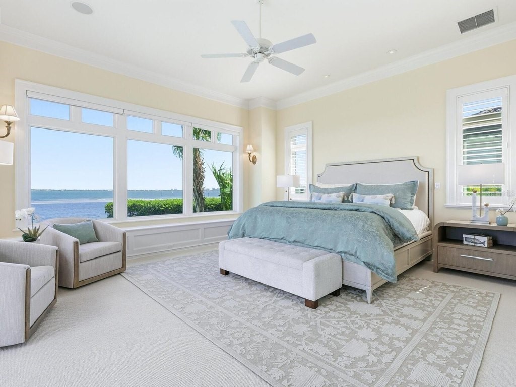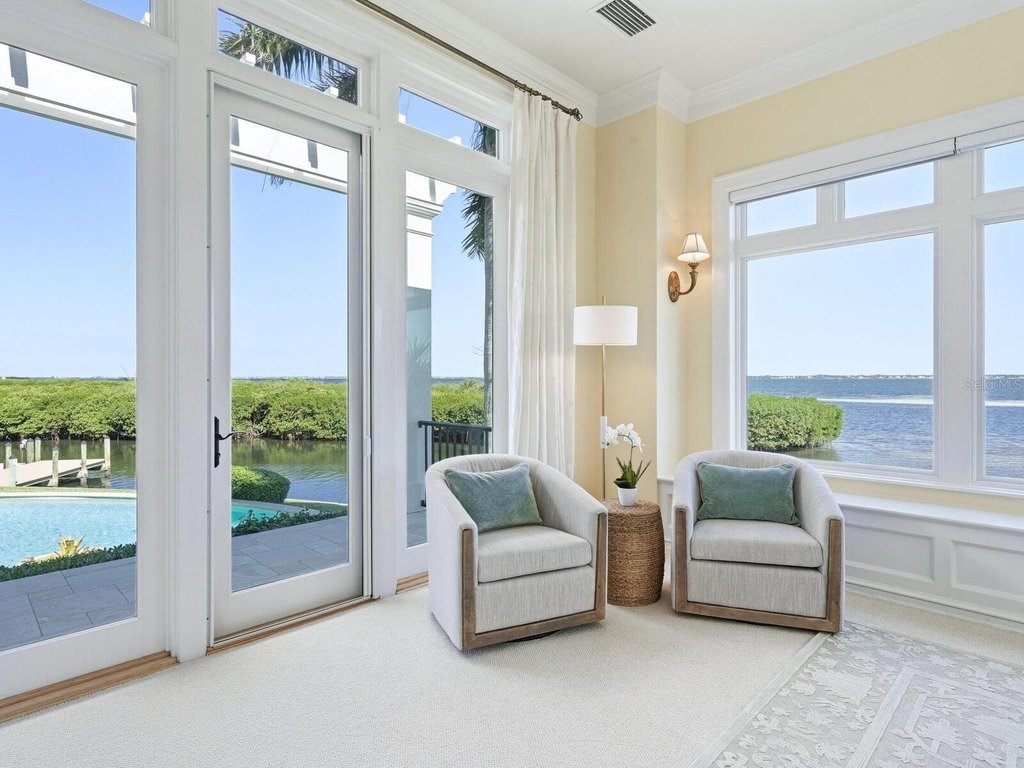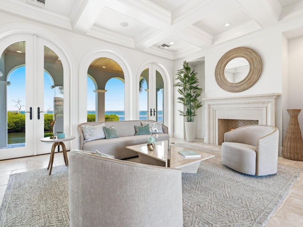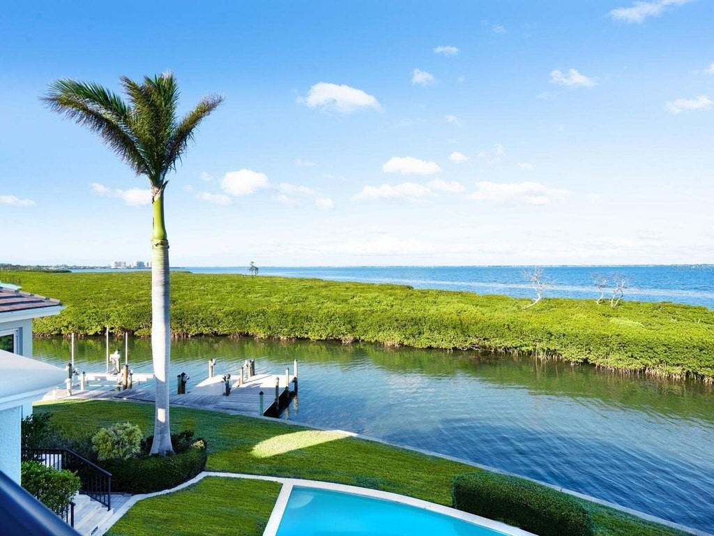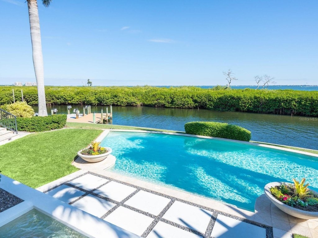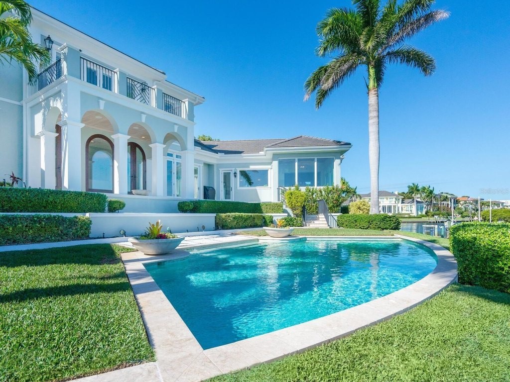 Exquisite Palladian-Style Waterfront Estate Located on the serene shores of Sarasota Bay, this home epitomizes elegance and sophistication. Designed by Cliff Scholz and meticulously crafted by Murray Homes, this, 5,300-square-foot masterpiece is situated in a double-gated community offering unparalleled privacy and exclusivity. Perched at the end of a quiet cul-de-sac, the property boasts almost 200 feet of pristine waterfront, with breathtaking views of the downtown Sarasota skyline and a protected deep-water yacht slip. Deeded access to a private Gulf of Mexico beach club enhances the ultimate coastal lifestyle. Inside, the home features an exceptional floor plan with four luxurious bedroom suites and numerous entertainment spaces, including a formal living room, dining room, family room, and a gourmet kitchen equipped for the finest culinary creations. Expansive waterfront terraces, a redesigned viewing porch, and his-and-her offices add to the home's functional elegance. Every detail has been executed to perfection, from the impeccable millwork to the finest finishes throughout. With magical views from every room, this estate embodies class, comfort, and privacy in one of Sarasota's most coveted locations. Experience refined waterfront living at its finest.