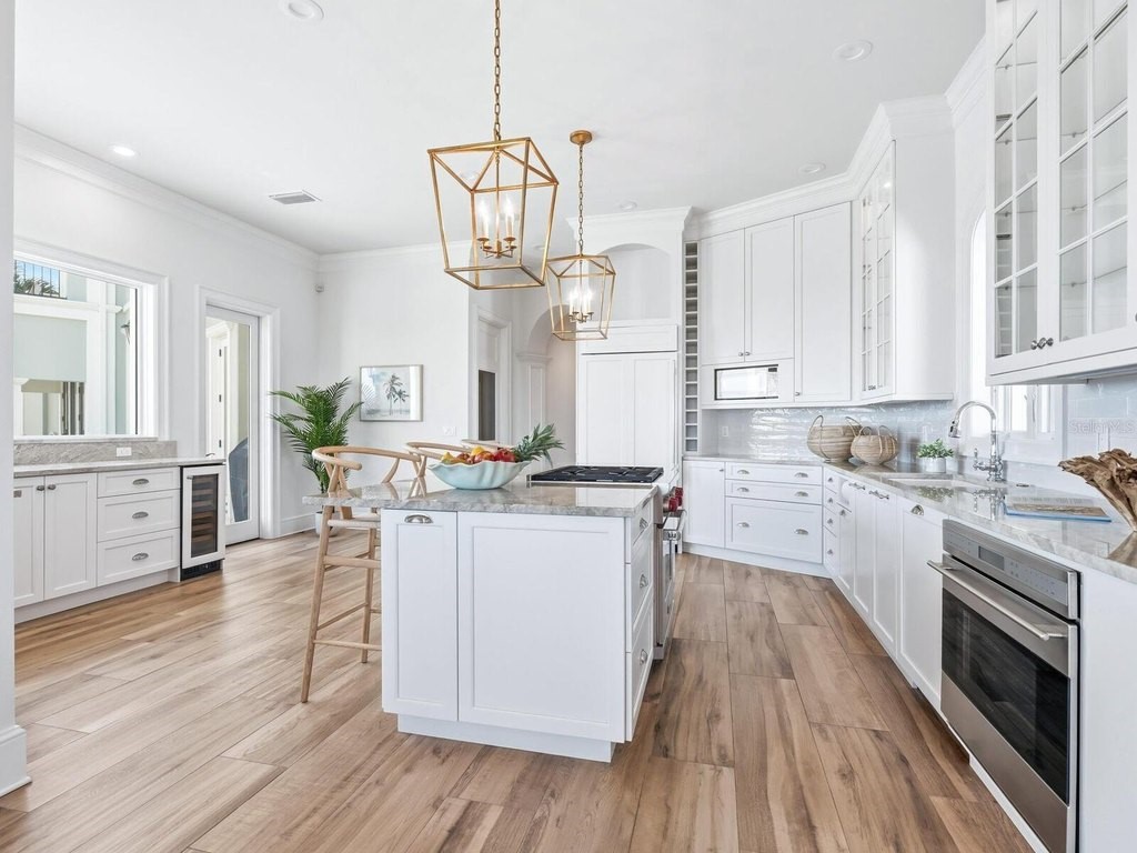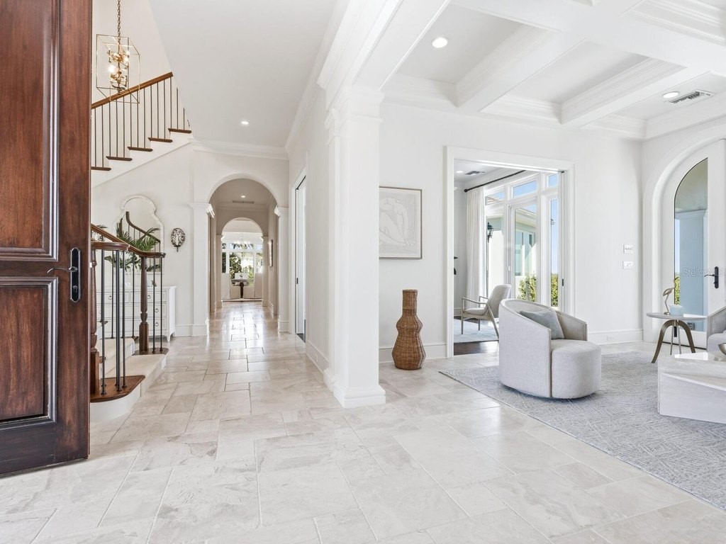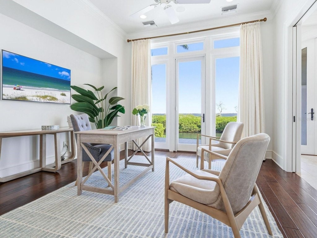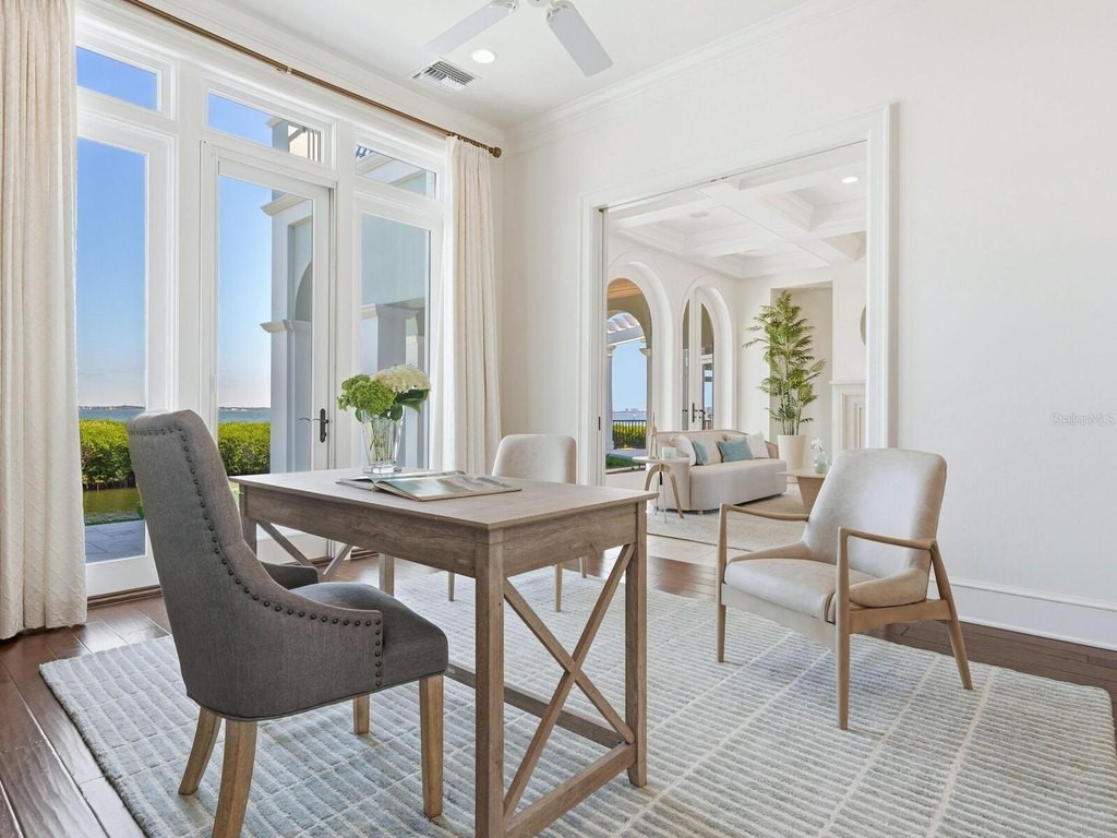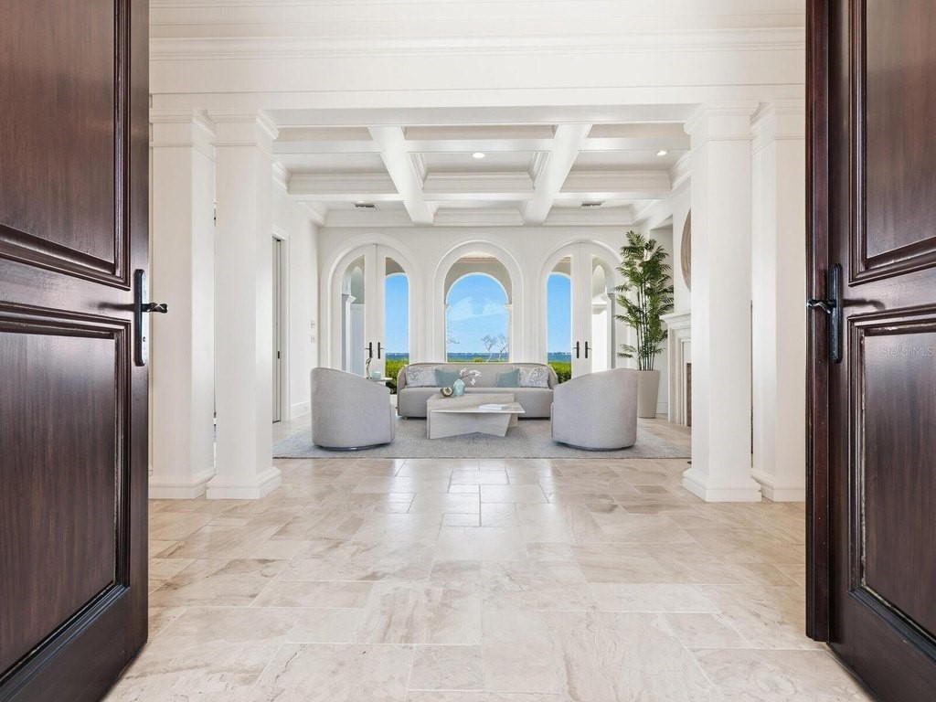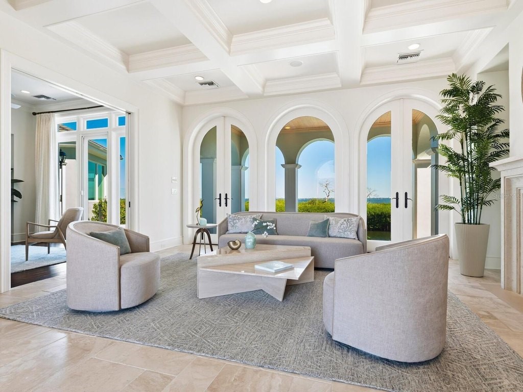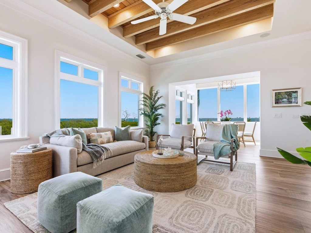 Exquisite Palladian-Style Waterfront Estate Located on the serene shores of Sarasota Bay, this home epitomizes elegance and sophistication. Designed by Cliff Scholz and meticulously crafted by Murray Homes, this, 5,300-square-foot masterpiece is situated in a double-gated community offering unparalleled privacy and exclusivity. Perched at the end of a quiet cul-de-sac, the property boasts almost 200 feet of pristine waterfront, with breathtaking views of the downtown Sarasota skyline and a protected deep-water yacht slip. Deeded access to a private Gulf of Mexico beach club enhances the ultimate coastal lifestyle. Inside, the home features an exceptional floor plan with four luxurious bedroom suites and numerous entertainment spaces, including a formal living room, dining room, family room, and a gourmet kitchen equipped for the finest culinary creations. Expansive waterfront terraces, a redesigned viewing porch, and his-and-her offices add to the home's functional elegance. Every detail has been executed to perfection, from the impeccable millwork to the finest finishes throughout. With magical views from every room, this estate embodies class, comfort, and privacy in one of Sarasota's most coveted locations. Experience refined waterfront living at its finest.